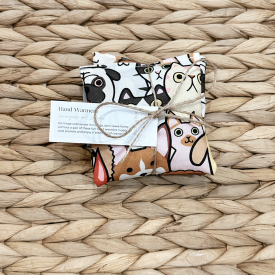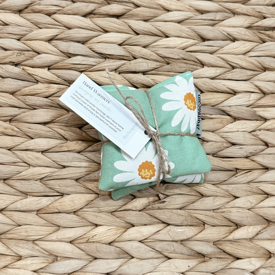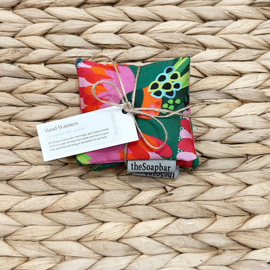 These two Soap Bar hand warmers are the perfect size for keeping cold hands warm! Made with beautifully patterned fabrics and filled with wheat and flax seeds, scented with a refreshing blend lemongrass and lavender essential oils. Flax seeds have a high oil content and retain their heat well. When heating, a glass of water in the microwave will help prevent the seeds from scorching.